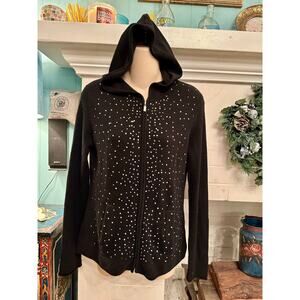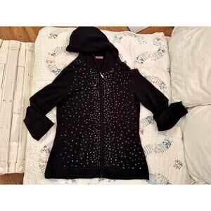 VINTAGE BLACK 100% CASHMERE RHINESTONED HOODIE S
