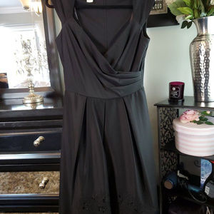 VINTAGE BLACK DRESS ELEGANT HEART NECKLINE BEADED SKIRT