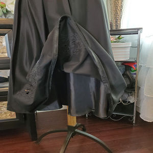 LIKE NEW! Its been in my closet for years but never wore it. Excellent Quality. No flaws. The zipper opens down into the skirt and works properly.