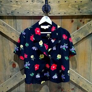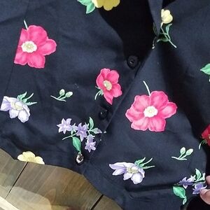 VINTAGE BLACK FLORAL BUTTON DOWN TOP 80s 90s Y2K