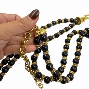 VINTAGE BLACK GOLD BEADED BELT 80s 90s CHUNKY MULTISTRAND WAIST CHAIN EUC SZ L
