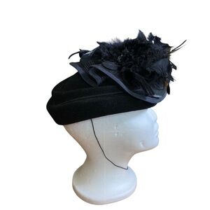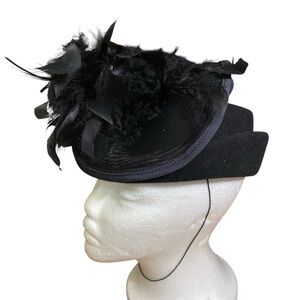 VINTAGE BLACK HAT FASCINATOR FEATHERS MADE IN USA 100% WOOL COSPLAY