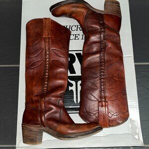 VINTAGE BLACK LABEL Frye Campus Cognac Brown Leather Knee High Cowboy Boot