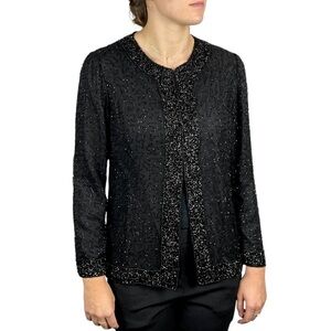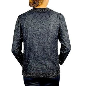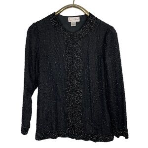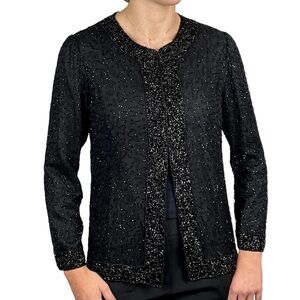 VINTAGE BLACK SILK BEAD EMBELLISHED HOLIDAY EVENING JACKET LAURENCE KAZAR
