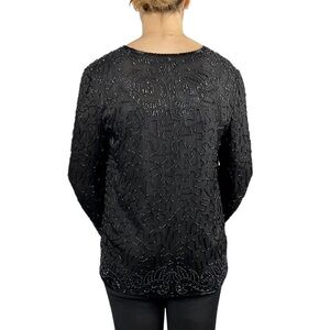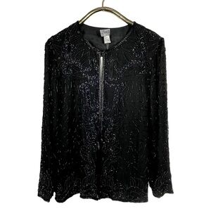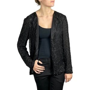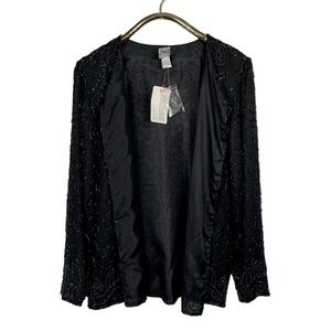 VINTAGE BLACK SILK BEAD EMBELLISHED LONG HOLIDAY EVENING JACKET JMD NEW YORK NWT