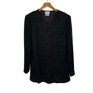 VINTAGE BLACK SILK EMBELLISHED BEADED HOLIDAY EVENING PARTY JACKET STENAY