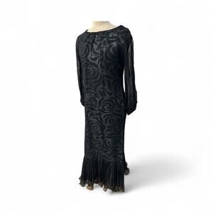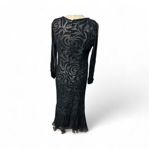 VINTAGE BLACK SWIRL MESH OVERLAY MAXI DRESS SZ M/L