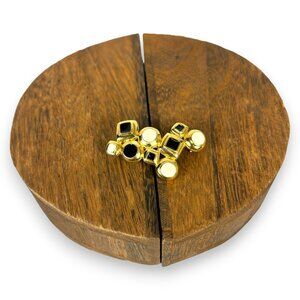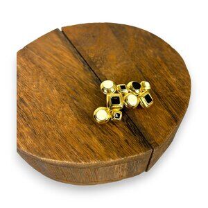 VINTAGE BLACK/WHITE ENAMELED GOLD PLATED SQUARE AND ROUND SHAPE BROOCH