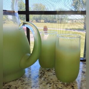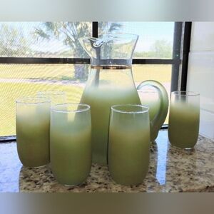 VINTAGE BLENDO FROSTED PITCHER AND GLASS SET