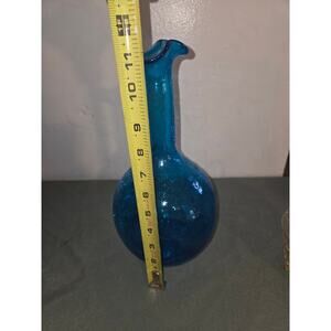 VINTAGE BLENKO GLASS HAND BLOWN BLUE CRACKLE PINCHED DECANTER BOTTLE VASE No lid