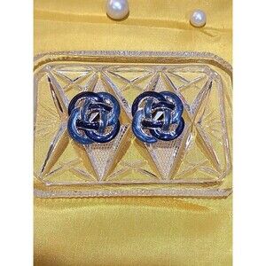 VINTAGE BLUE CELTIC IRISH KNOTS LARGE CLIP ON EARRINGS