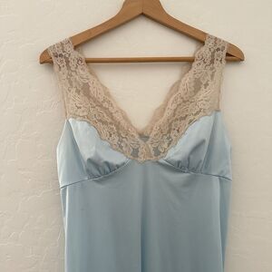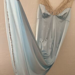 VINTAGE BLUE w/BEAUTIFUL LACE VANITY FAIR WOMENS LONG NYLON NIGHTGOWN 36 M GOWN