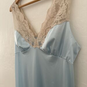 vintage vanity fair nightgown · nylon antron · lace lingerie · powder blue nightgown · 70s vanity fair · full length gown · mid century boudoir · USA made