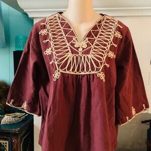 VINTAGE BOHO HIPPIE SOUTACHE EMBROIDERY TOP M