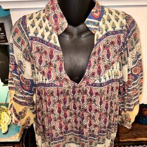 VINTAGE BOHO INDIA HIPPIE BLOCK PRINT DRESS URBAN RENEWAL