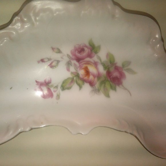 VERY OLD VINTAGE BONE DISH ROSES GOLD RIM ONLY NARKING ON BOTTOM G859