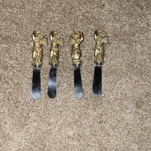VINTAGE BOSTON WAREHOUSE SPREADER KNIVES GOLDEN CHERUBS BUTTER CHEESE SPREAD