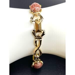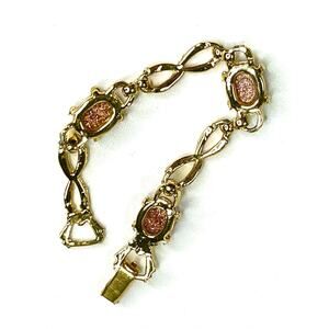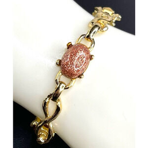 7" bracelet, gold tone adorned with Sandstone Cabochons, in very good condition. Please see photos for close ups, condition & measurements. As always, if you have any questions, please don't hesitate to ask & THANKS SO MUCH for stopping by BunnyBlvd!!!