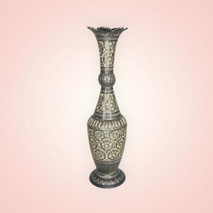 This vintage brass vase is a stunning piece that showcases the beauty of Indian culture. The intricate hand-etched floral pattern on the vase is a true work of art. Crafted with precision and care, this vase is a testament to the rich heritage of India.
