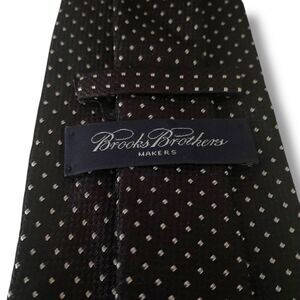 This is a vintage Brooks Brothers Makers silk men's neck tie. It is 60 long, 4wide at its widest point, and features micro white dots on a black background. It is in excellent used condition and comes from a smoke-free home.
