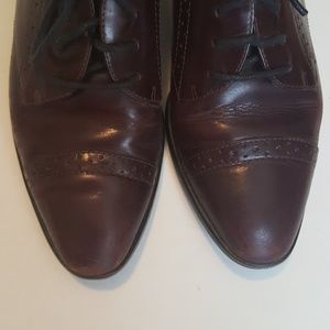 Super cute brogues / oxfords. Deep mahogany / burgundy / brown color, has a slight purple undertone to it. Genuine vintage. Leather detail (see photos). Lace ups , have black laces. Heel is about 1 1/2". Slightly pointed toe. Genuine leather. Made in Brazil.