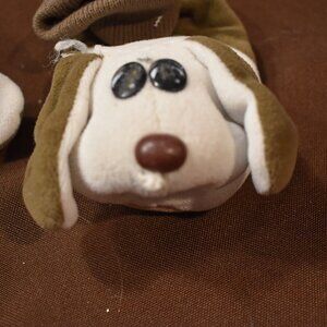 SMALL VINTAGE BROWN & WHITE POUND PUPPY KIDS SLIPPERS.