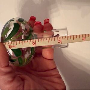 VINTAGE HOME ACCENT 2 SMALL BUD VASES CLEAR GLASS PINK PURPLE GREEN HAND PAINTED FLOWERS