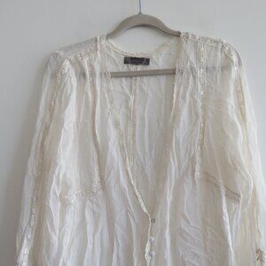 VINTAGE BUFFALO DAVID BITTON Sheer Lace Button Front Top White Y2K Fairy Size M