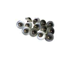 This lot of 13 vintage pearl white gold metal buttons is perfect for adding a touch of elegance to shirts and blouses. The round shape and original vintage design make them a unique and collectible addition to any sewing project. The gold and white color scheme gives them a timeless and classic look that is sure to enhance the style of any garment.