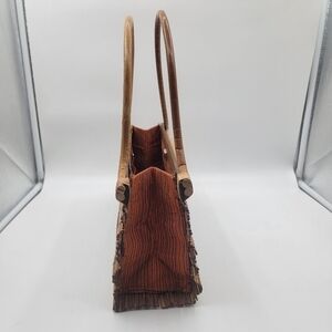 Vintage Mango Brown Bamboo Slatted Handbag with Wooden Handle. This stylish slatted handbag is in very good condition. Masterfully crafted in Chiang Mai, Thailand.