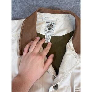 VINTAGE Banana Republic Jacket Mens XL Beige Leather Collar Utility Workwear