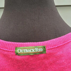 Vintage Banana Republic Outback Red Cardigan. Fuchsia color. 55% Ramie, 45% Cotton, Size S. Armpit to armpit 20 inches, Length 20 inches. Not cropped but is quite short. Two front pockets. Buttons say Outback Red, O-B-R Excellent condition.
