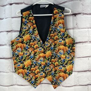 VINTAGE Basic Editions Halloween Vest Womens SZ L Pumpkins Jack O Lantern Bears