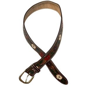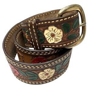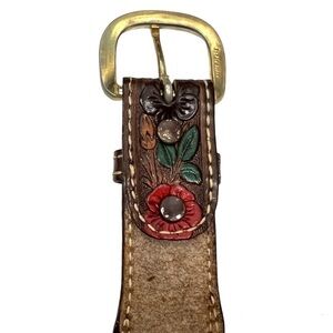 VINTAGE Belt Hand Tooled Leather “Debbie” Flowers Leaves Western Rodeo Texas