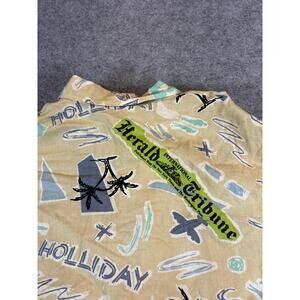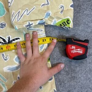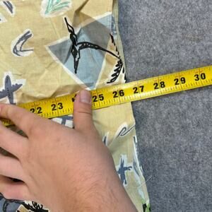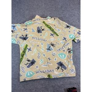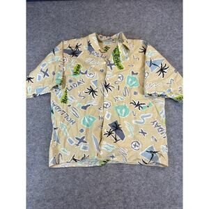 VINTAGE Benetton Camp Shirt Mens Large Yellow Graphic Short Sleeve Aloha Beach