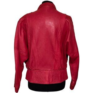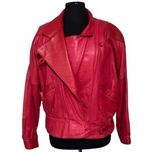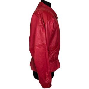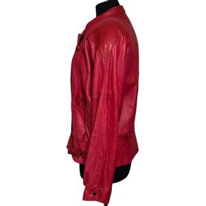VINTAGE Berman's Red Leather Jacket w/Shoulder Pads Women's Size Large (READ)