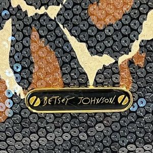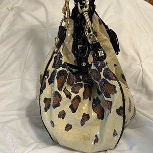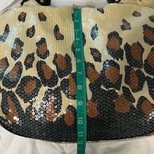 VINTAGE Betsy Johnson Black Brown Leopard Print Sequin Hobo Shoulder Bag Purse