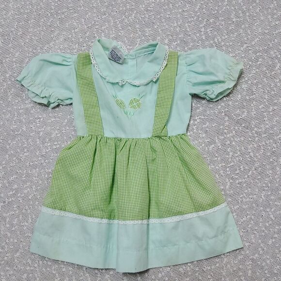 VINTAGE Bette's Girls Green Gingham Flower Collared Dress 2T
