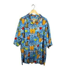 VINTAGE Big Dogs Men’s Ultimate Vacation Novelty Hawaiian Shirt Blue Multi 3X