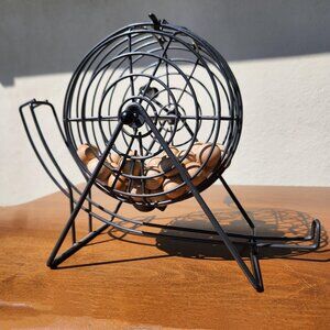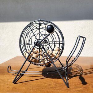 Functional spinning cage dispenses balls for Bingo Game or use it as a bookcase decor