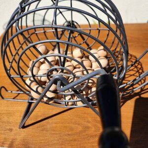 VINTAGE Bingo Cage with Wooden Etched Balls Spinning Handle Board Game Table Game Home Decor