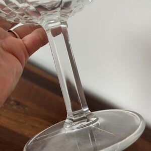 No flaws noticed, and has a "cube" like cut design in the glass and around the top edge.