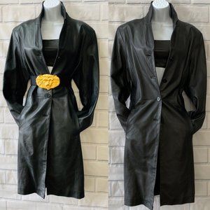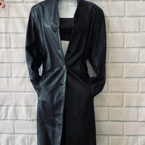 VINTAGE Black Genuine Leather Coat Size L
