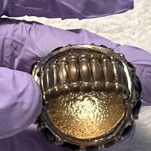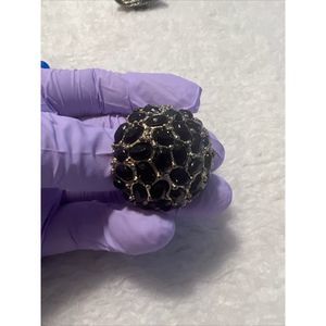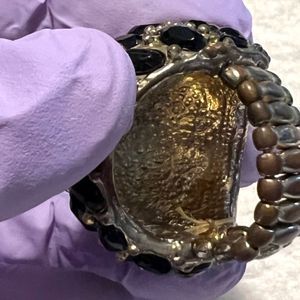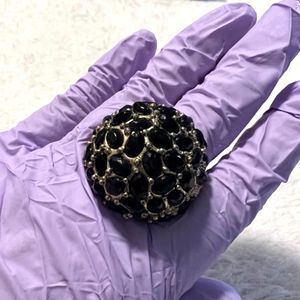 VINTAGE Black Glass Stone Large Dome Shape Gold Tone Stretch Band Statement Ring