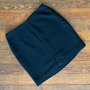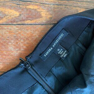 Super chic black mini skirt by Sandra Angelozzi with back slit and zipper closure.