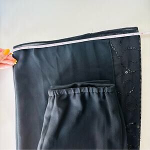 VINTAGE Black Sheer Panel Beaded Sequins High Rise Wide Leg Flare Dress Pants 8
