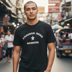 VINTAGE Black Tee M Khaosan Road Bangkok Thailand Hippie Grunge Skate Punk Y2K