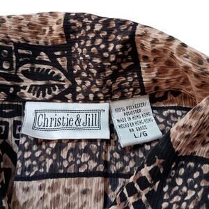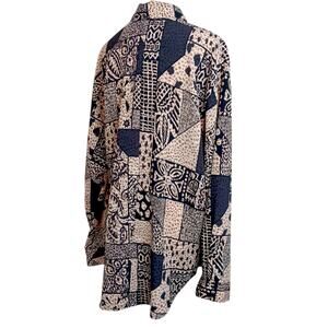 VINTAGE Blouse Top Long Tunic Hong Kong Geo Animal Print No Iron Oversized LG