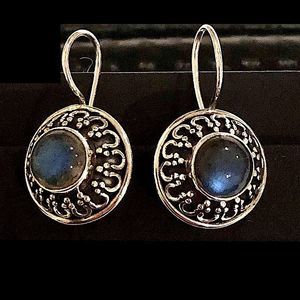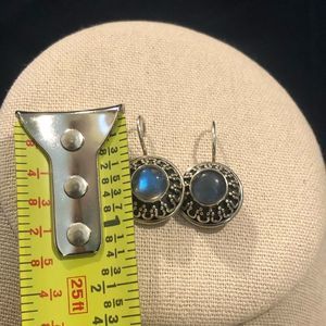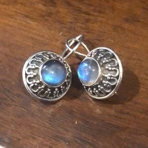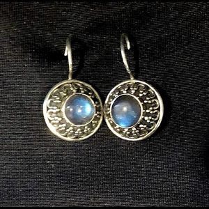 VINTAGE Blue Moonstone Cabochon Sterling Silver Oxidized Earrings
