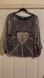 Vintage navy blue silk long sleeve top with silver sequins and beadwork. Features a beaded pearl heart motif at the center and vertical sequin stripes. Made in India. Excellent condition with minimal wear - a couple missing beads shown in last photo.